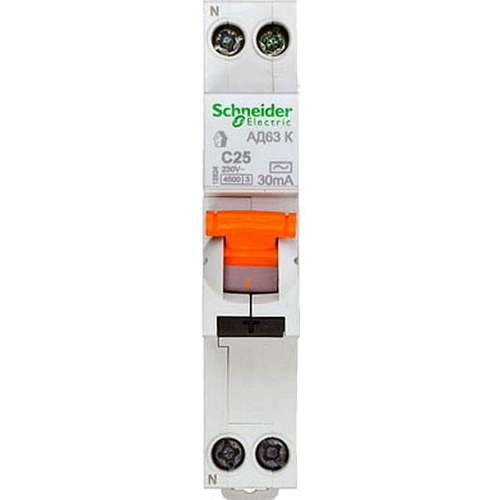 В нашем магазине «Главэлектрика» в Нижнем Новгороде, вы можете приобрести товар: «Диф. автомат 2П 25А 30мА SCH Doмovoy АД63К хар-кА С тип АС 4,5кА компактн. 1П+N 12524» с доставкой по г. Нижний Новгород.