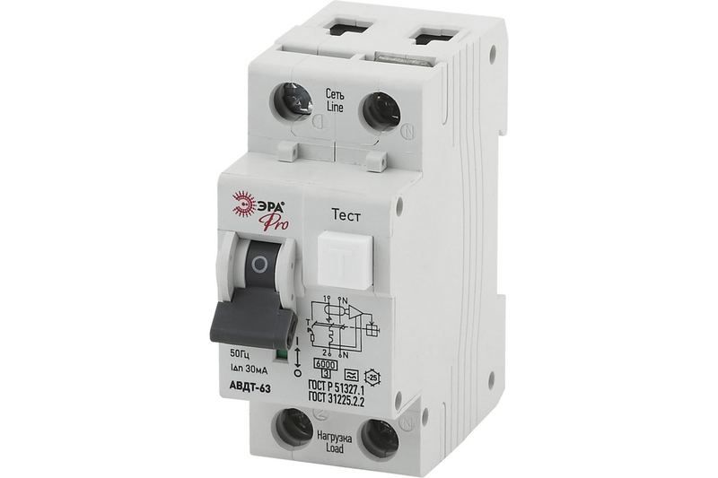 Дифавтомат Эра АВДТ 63 обладает следующими характеристиками: