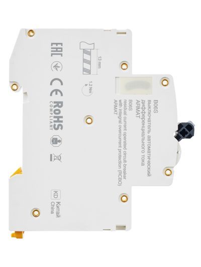 Автоматические выключатели дифференциального тока (АВДТ) ARMAT серии B06S могут осуществляют функции защиты от токов перегрузки и короткого замыкания и защиты человека от токов замыкания на землю. Модельный ряд включает в себя устройства с номинальными токами от 6 до 32 А, характеристиками срабатывания по сверхтоку B и C, типами защит AC и A с номинальным дифференциальным током отключения 30 мА. Номинальная отключающая способность АВДТ ARMAT серии B06S составляет 6 кА.