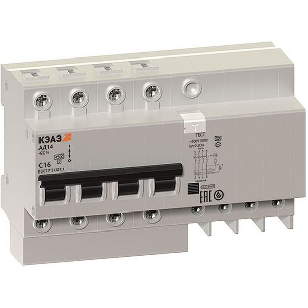 Дифавтомат КЭАЗ АД14 4P 25А (C) 4.5 кА, 30 мА ( AC ), 141608 имеет номинальную чувствительность дифференциального модуля 30 мА, что позволяет обнаруживать даже малые токи утечки и быстро отключать электрическую цепь в случае необходимости.