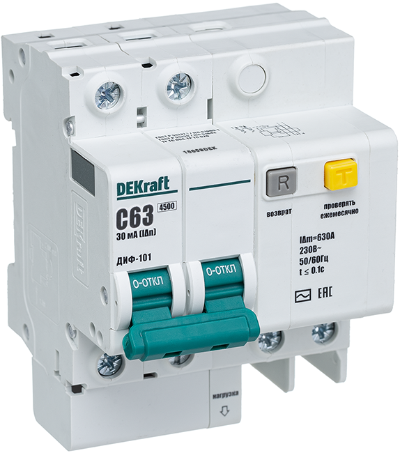 В нашем магазине «Главэлектрика» в Нижнем Новгороде, вы можете приобрести товар: «Диф. автомат 2П 63А 30мА DEKrАft ДИФ-101 тип АC хар-кА С 4,5кА» с доставкой по г. Нижний Новгород.