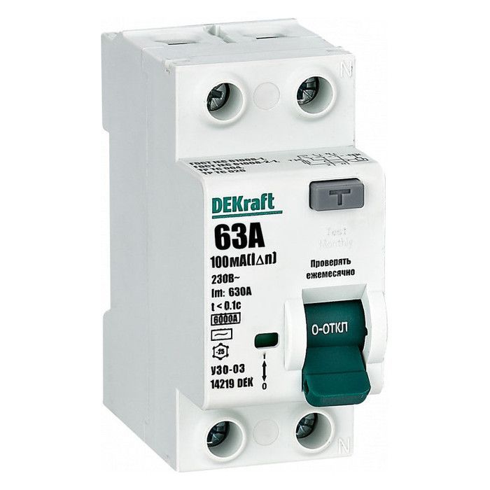 УЗО DEKraft УЗО-03 2P 63А 6 кА, 100 мА (AC), 14219DEK - это двухполюсное устройство защитного отключения, предназначенное для обеспечения безопасности электрических сетей и оборудования. Данное УЗО имеет номинальный ток 63А и предельную отключающую способность 6 кА. Триггер чувствительности составляет 100 мА для обнаружения утечек переменного тока. Продукт отвечает высоким стандартам качества и безопасности, что делает его надежным выбором для защиты электрических цепей от перегрузок и коротких замыканий.