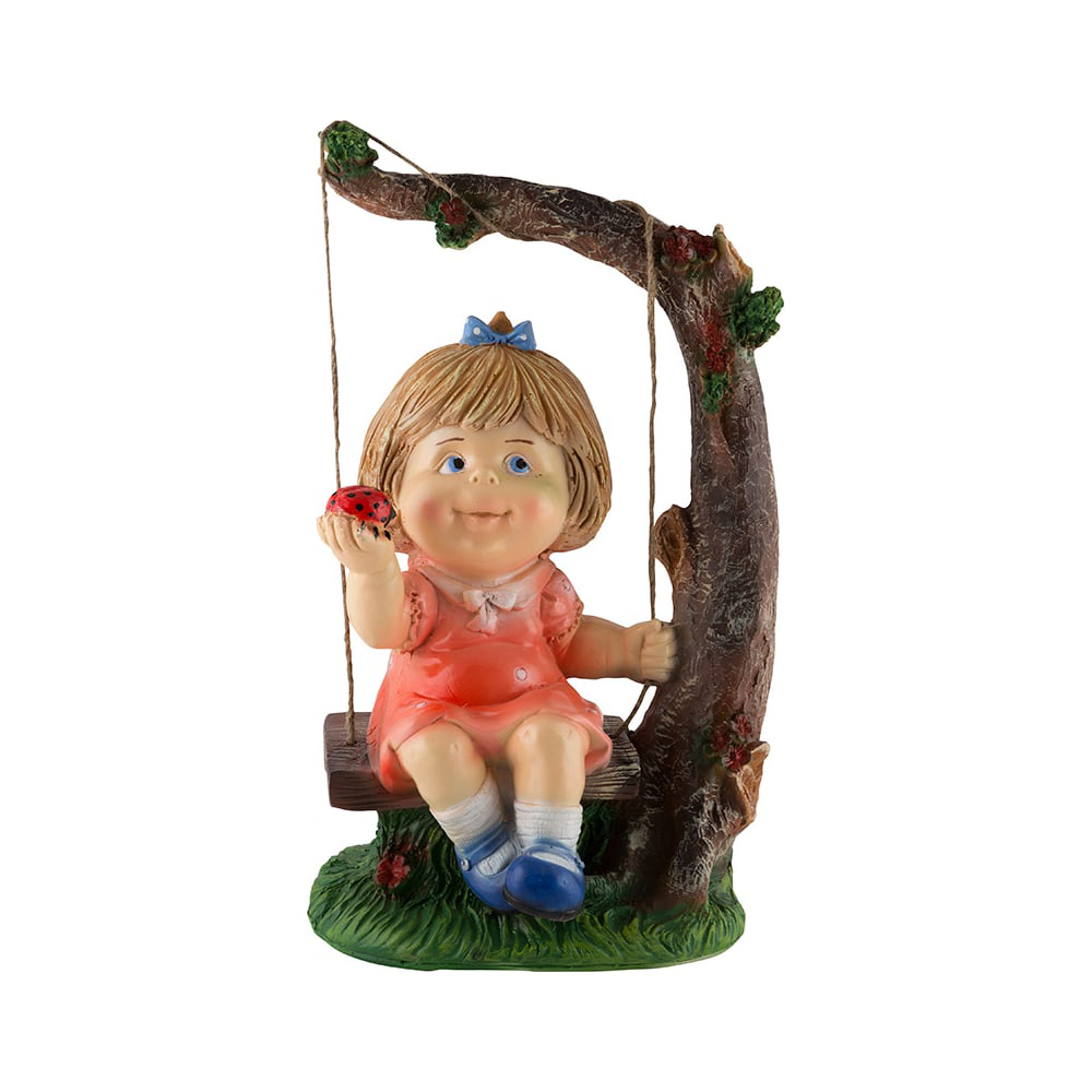 Садовая фигурка Park Девочка на качелях 169342 - украшения для частного участка и сада. Высокая прочность. Полистоун характеризуется ударопрочностью, атмосферостойкостью и не выцветает на солнце. Универсальность. Пористая структура материала отличается высокими санитарно-гигиеническими свойствами, устойчивостью к влаге и высоким температурам, что позволяет размещать фигурку в бане или сауне. Экологичность. Безопасна для людей и домашних животных.