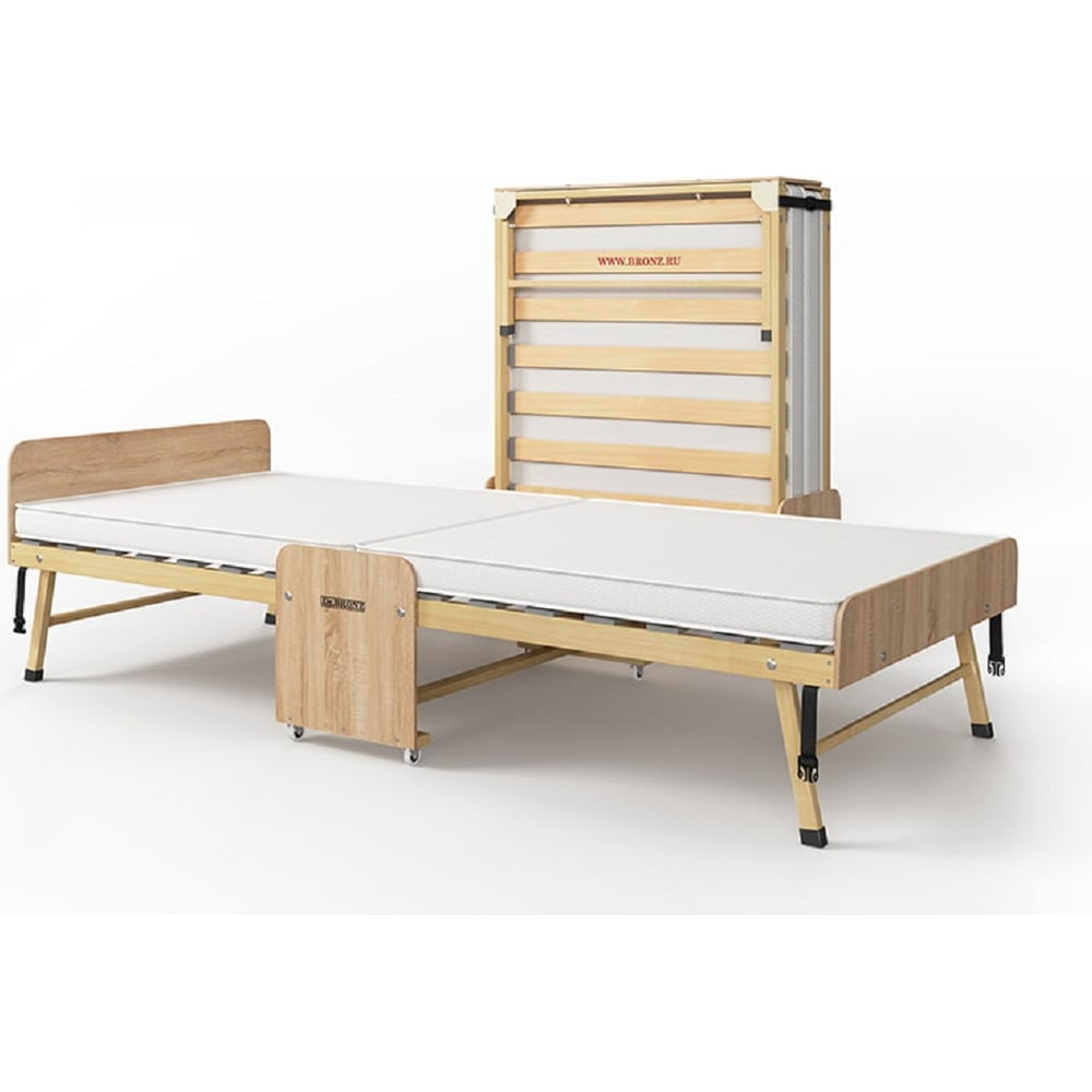 Раскладная кровать Dr. Bronz Основа сна сонома 80190101 оснащена матрасом и ортопедическим основанием. Эластичное буковое основание длительное время сохраняет ортопедические свойства, поддерживая позвоночник, способствуя улучшению кровоснабжения и оказывая общий оздоравливающий эффект. Спальное место не принимает так называемый «эффект гамака». Позвоночник будет оставаться идеально ровным без малейшего напряжения, а тело будет находиться в правильном анатомическом положении. Матрас из экологически чистого холофайбера. По своим характеристикам он напоминает хлопок или пух высокого качества, однако в эксплуатации он гораздо лучше этих натуральных аналогов. Волокна-пружинки, из которых состоит нетканое полотно, обеспечивают его устойчивость к истиранию, невесомую легкость, воздушность и удивительную мягкость.
